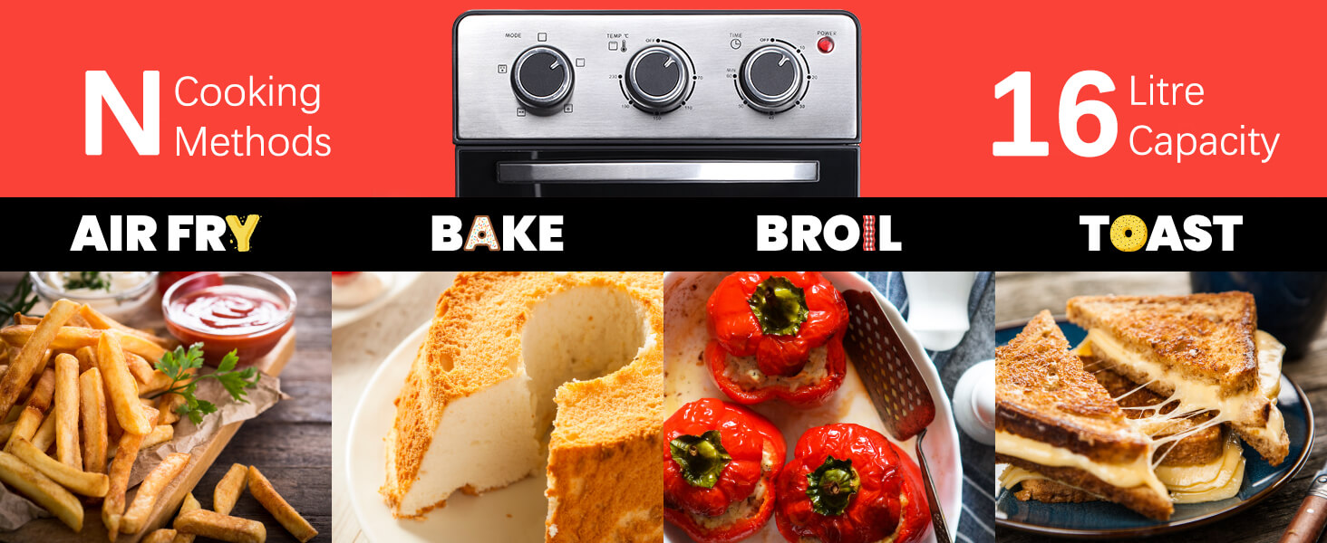 R: El horno de aire mecánico de 16 litros tiene múltiples funciones como hornear, freír al aire, tostadora, preservación del calor y convección, y es adecuado para diversos escenarios de cocción, incluidas cocinas domésticas, dormitorios de estudiantes, oficinas, etc.