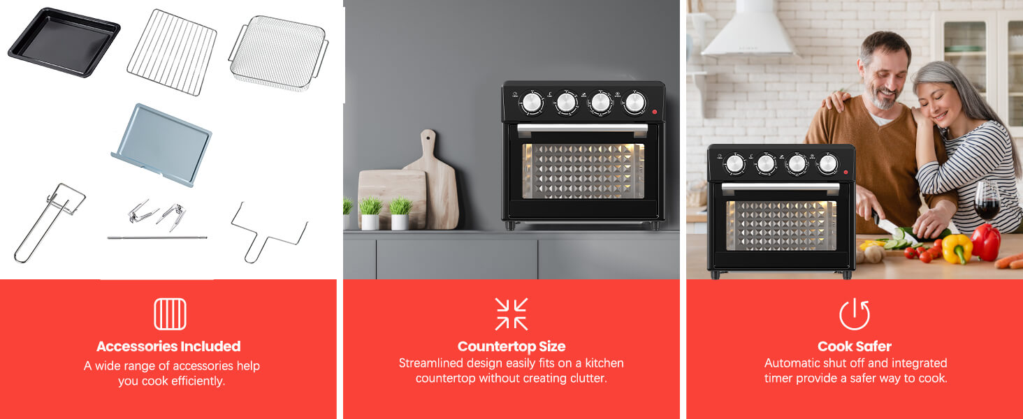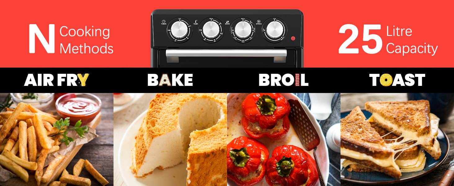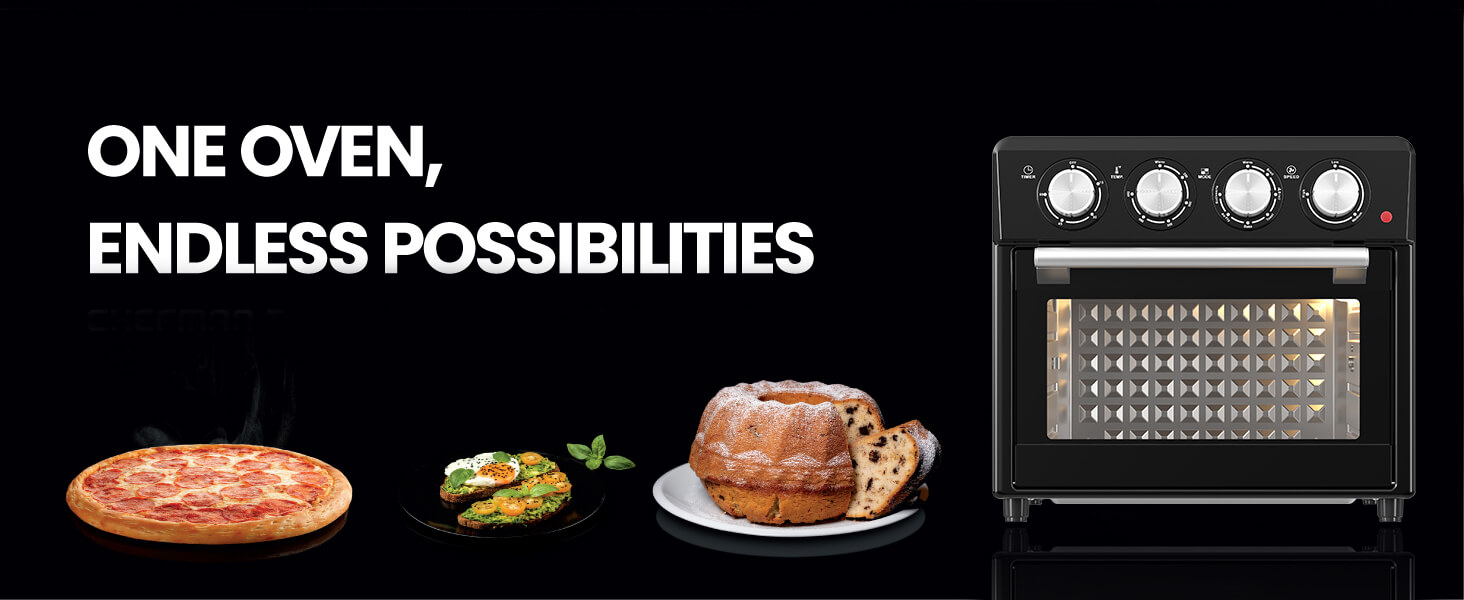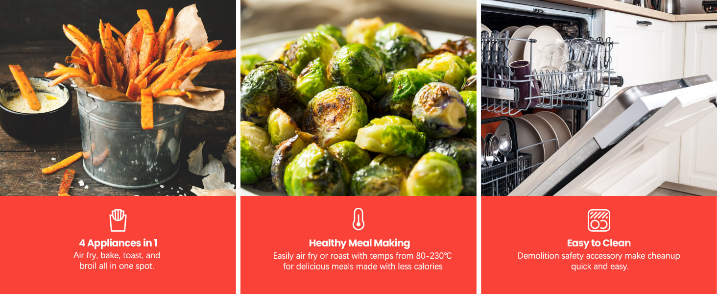 1. Diseño multifuncional: El Air Fryer Oven integra múltiples funciones, incluido un horno, una freidora y una tostadora, para satisfacer diferentes requisitos de cocción, lo que le permite preparar fácilmente una variedad de platos deliciosos.