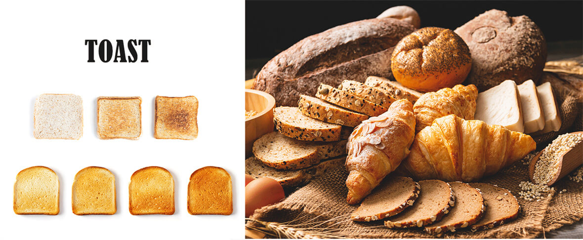 2. Tostado de pan: Consiga superficies de pan perfectamente doradas y crujientes utilizando el horno, manteniendo al mismo tiempo un interior suave y esponjoso.