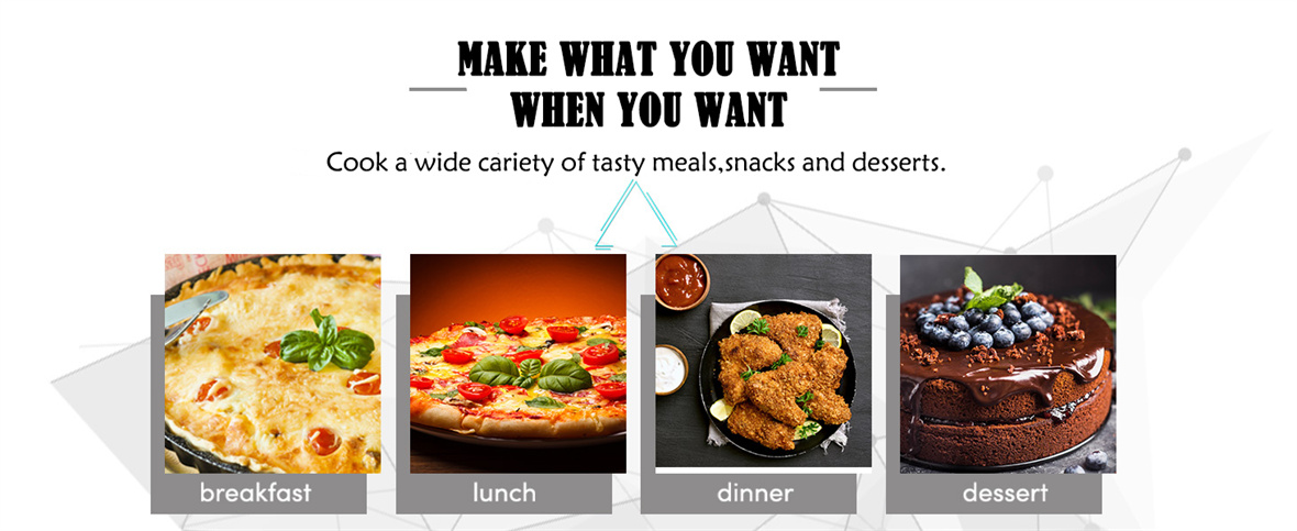 6. Postre horneado: Experimente con diversos dulces, como galletas, pasteles y bizcochos, y prepare deliciosos postres sin esfuerzo.
