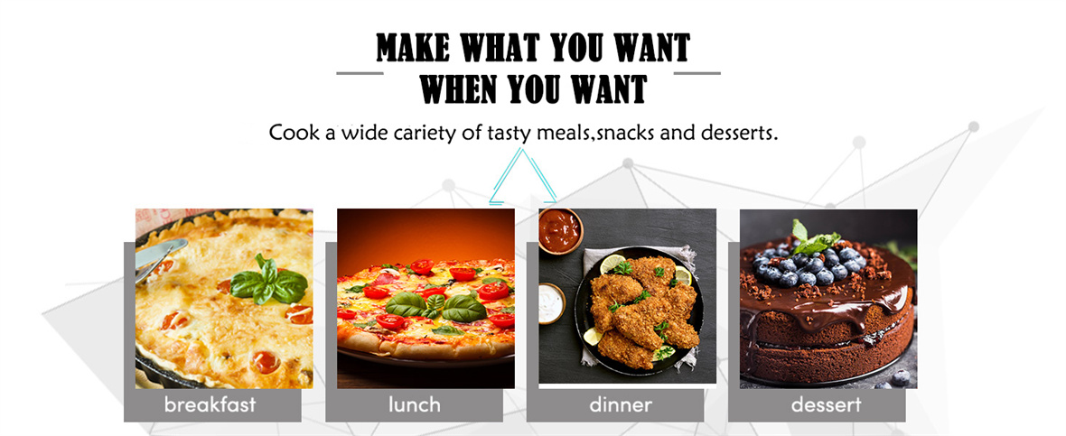 2. Versatilidad: Desde brochetas hasta alitas, papas fritas y panecillos de pizza, galletas, sándwiches y salchichas y mucho más, este horno satisface una amplia gama de necesidades culinarias, transformando su hogar en una cocina gourmet.
